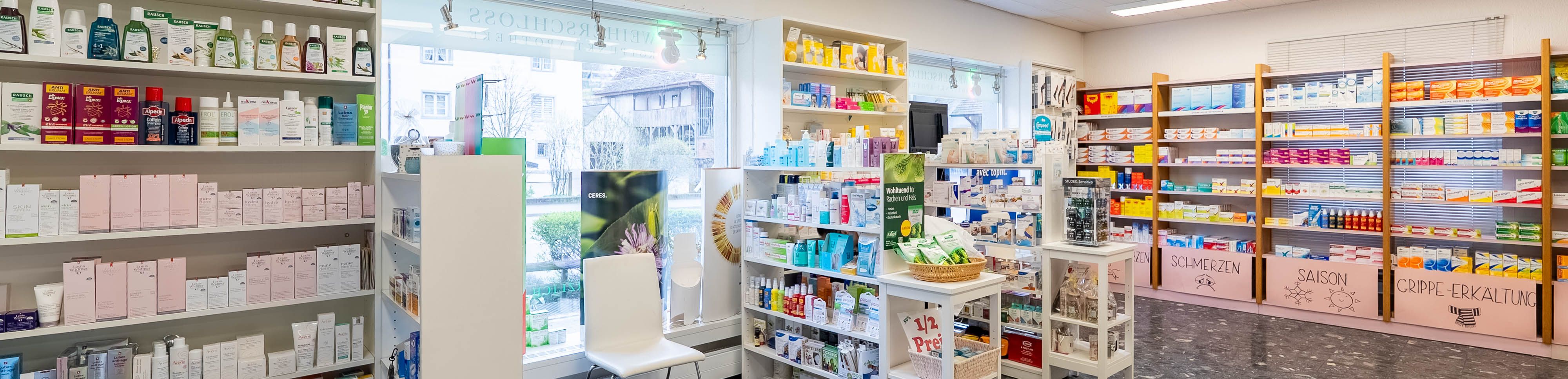 Die Weiherschloss Apotheke Bottmingen heisst Sie gerne bei allen Fragen rund um die Themen Gesundheit und Prävention willkommen. Wir bieten Ihnen ein umfangreiches Sortiment der Schul- und Komplementärmedizin sowie eine umfassende Beratung in diesen Bereichen an.